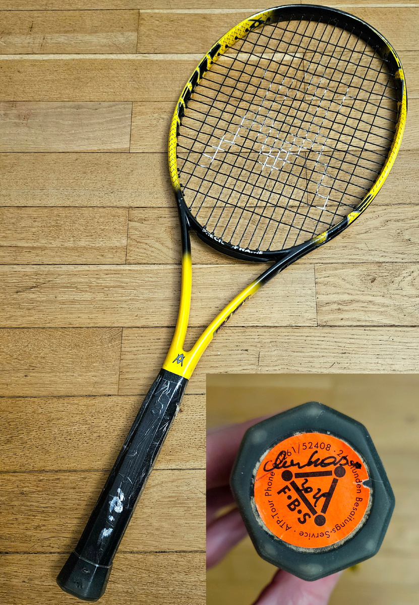 ✅️ А во-вторых, наш сегодняшний экземпляр является ЛИЧНОЙ РАКЕТКОЙ одного из самых загадочных теннисистов всех времен С ЕГО АВТОГРАФОМ НА КОЛПАЧКЕ:
