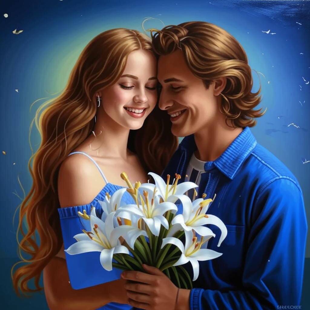 Когда они вошли в квартиру, Дима попросил ее закрыть глаза и положил руки на плечи. Он вел ее перед собой, направляя к столу, на котором в красивой фарфоровой вазе стоял букет из белых лилий.