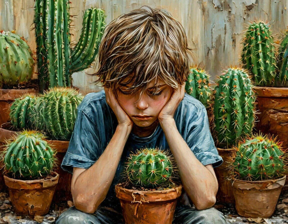 Слова утешения не работали. Илья сделался больным. Теперь изо дня в день он рассказывал, что кактус его мучается, скукожился, уменьшился в размерах, огромную рану на своем теле кое-как залатал уродливой коричневой коркой, но теперь расти ему некуда, да и вряд ли вообще бедному растению удастся оправиться от такого жестокого, чудовищного и непоправимого урона. А брат Максим радуется. Расцвел. Сияет. Настроение отличное.