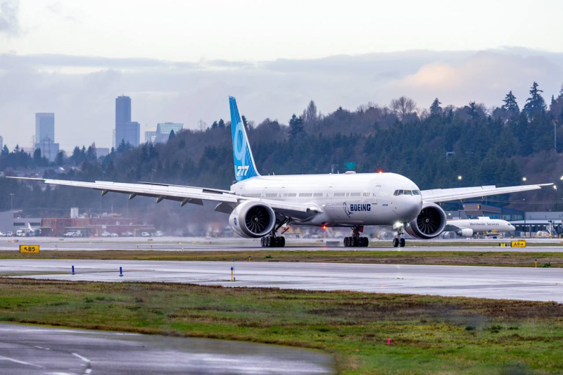 Первый момент – пять лет прошло с момента первого полёта Боинга-777Х. Самолёт недавно вернулся к своим сертификационным испытаниям, которые не так давно по окончанию съехали на 2026 год. Боинг столкнулся с множеством моментов, которые находятся в процессе решения. Особо о проблемах предпочитают не говорить. Самолёт какое-то время совершает полёты, потом останавливается. Последней проблемой были пилоны двигателей, точнее силовые элементы крепления двигателей. У Боинга хватает проблем и без топоров, тем не менее подобные новости несколько подогревают стоимость акций, а то за четвёртый квартал совсем грустно отчитались. А тут самолёт к полётам вернулся – ещё пара лет и 503 самолёта можно будет поставлять.