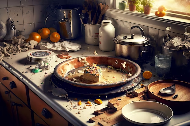 Квартира встретила хозяйку спертым воздухом и беспорядком. В кухне громоздилась гора немытой посуды. На плите красовалась сковородка с намертво пригоревшим содержимым.