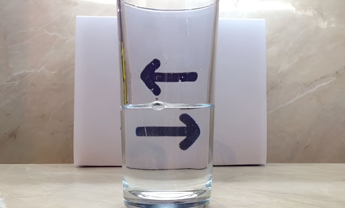 Для проведения некоторых физических экспериментов не требуется никакого сложного оборудования. Более того, эффектную демонстрацию работы тех или иных законов природы или ее явлений можно провести прямо у себя дома. Простой стакан воды способен сотворить настоящее «волшебство», впрочем, вполне объяснимое с точки зрения науки. Подписывайтесь на наш канал в Telegram для пользователей устройств Apple. Полезные инструкции для iPhone, iPad и Mac Для демонстрации этой оптической иллюзии вам понадобится лист бумаги, черный маркер и стакан для обычной прозрачной воды. Нарисуйте на бумаге две черные горизонтальные стрелки, указывающие вправо или влево и положите лист вертикально, прислонив его к какой-то поверхности. Если посмотреть на стрелки через пустой стакан, то они немного деформируются, благодаря стеклу, но и только. Теперь наливайте в стакан воду и смотрите на стрелки уже через нее. Неожиданно окажется, что их направление поменяется на прямо противоположное. Если налить воды до половины,