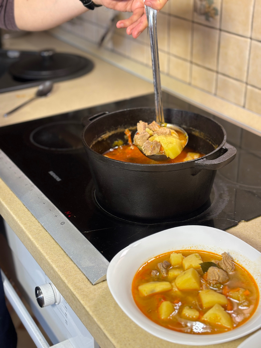 Простой, пошаговый рецепт, подпишись и сохрани👌 Подготовьте ингредиенты: ✅мясо птицы 500 гр(у меня филе бедра индейки,можно взять любое мясо на Ваш вкус, от выбора мяса может зависеть время обжарки и тушения) ✅морковь 100 гр ✅перец болгарский 100 гр ✅сельдерей 100 гр ✅лук 100 гр ✅чеснок 2 зубчика ✅соль 1 чайная ложка ✅перец черный свеже молотый 1/2 чайной ложки ✅паприка 1 чайная ложка ✅лавровый лист ✅перец душистый горошек ✅кориандр 1/3 чайной ложки ✅подсолнечное масло 2 столовые ложки Шаг 1 В кастрюлю влейте подсолнечное масло и разогрейте на среднесильном огне Шаг 2 Нарежьте мясо и обжарьте в течении 10 минут Шаг 3 Нарежьте лук,чеснок, сельдерей, морковь, болгарский перец Шаг 4 К обжаренному мясу добавьте нарезанные овощи (все кроме картофеля) и все специи. Тушите 10 минут изредка помешивая. Шаг 5 Очистите и нарежьте картофель четвертинками. Добавьте картофель в рагу и залейте водой. Вода должна покрывать картофель на 1-2 см сверху. Шаг 6 Тушите рагу 45 минут на сред