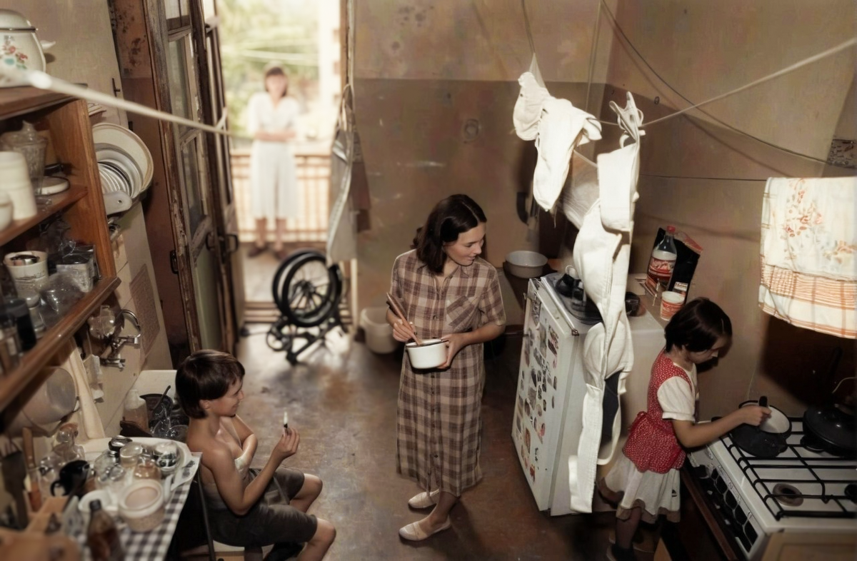 В коммуналке на Арбате пахло капустой и старыми обоями. Скрипучие половицы хранили шаги десяти поколений, а стены, пропитанные чадом и разговорами, знали всё. Комната № 5 — царство Анны Петровны. Вдова, блокадными ночами вырезавшая из ремней лепёшки, теперь хранила тишину, как реликвию. На этажерке — фото мужа в рамке с треснувшим стеклом: «Погиб под Синявино», — говорила она, протирая пыль тряпкой, свёрнутой в плотный рулон. Из № 6 доносился плач. Молодая учительница Марина качала дочь, лицо её было серым от усталости. Муж Коля, инженер-недосоня, метался между кухней и коридором, роняя: «Сейчас, сейчас…» Их карточки исчезли утром — кто-то стащил из ситцевой сумочки на общей вешалке. «До получки — неделя», — шептала Марина, прижимая к груди маленькую Таню, будто боялась, что украдут и её. Анна Петровна появилась на пороге без стука. В руках — синий платок, завязанный узлом.