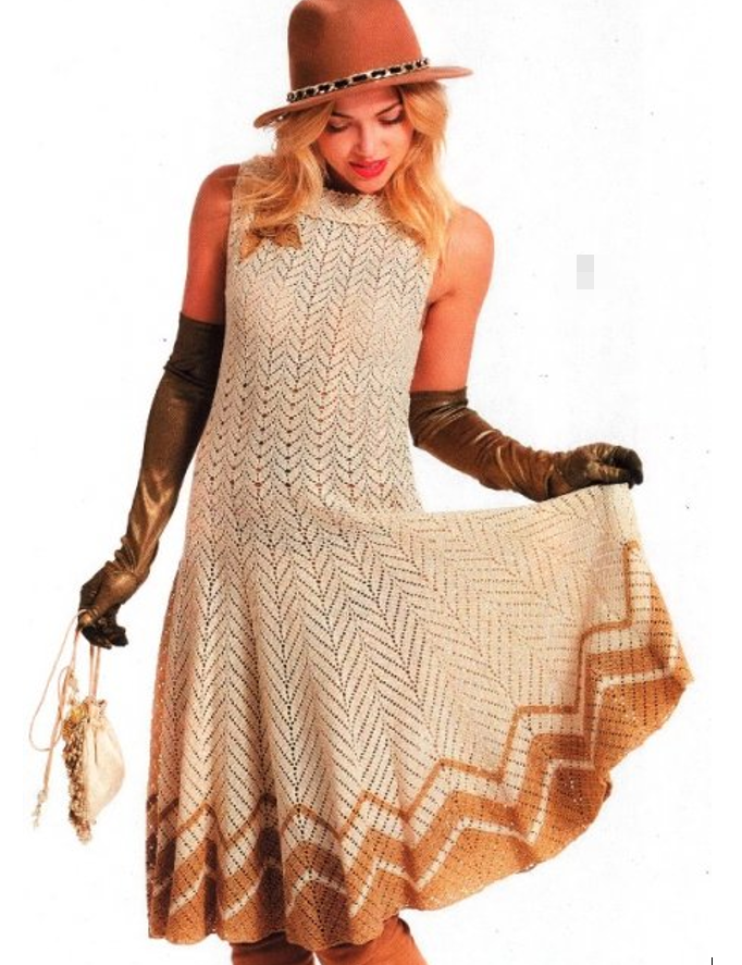 Красивое платье крючком: схема и описание вязания узором "Ёлочка".