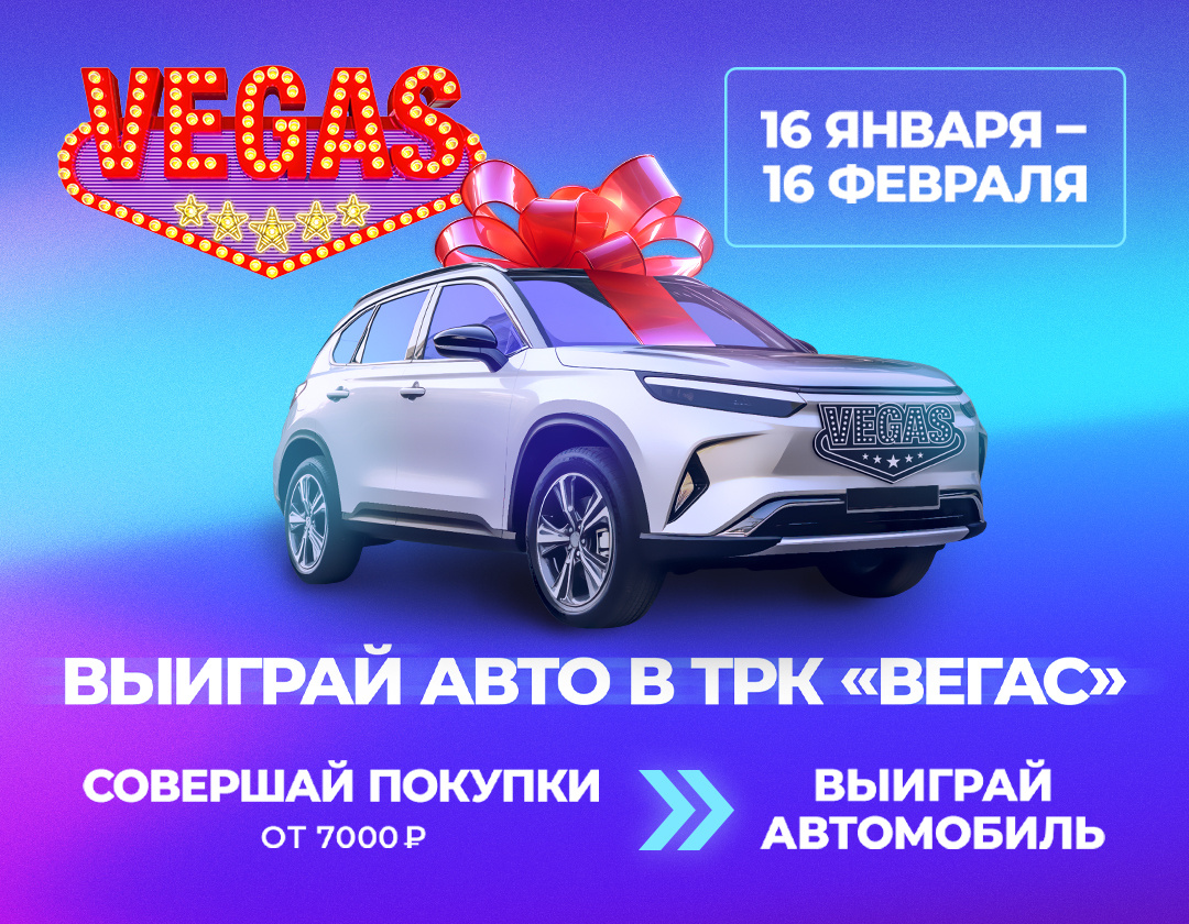 До 16 февраля совершайте покупки в VEGAS Кунцево* и VEGAS Сити**. Регистрируйте чеки от 7000 ₽ на стойке информации. Получите купон и опустите его в лототрон. Каждые 7000 руб. в чеке = 1 купон. Больше чеков – больше шансов на победу! 16 февраля в VEGAS Кунцево состоится финал розыгрыша с концертом Bahh Tee & TURKEN и розыгрышем призов от партнеров VEGAS. Чтобы получить главный приз, нужно лично присутствовать на финальном мероприятии. Желаем удачи и до встречи в VEGAS! *Адрес VEGAS Кунцево: Московская область, Одинцовский городской округ, село Немчиновка, Хорошёвский проезд, 14 **Адрес VEGAS Сити: Московская область, Красногорск, Международная улица, 12 ***Реклама. АО «КРОКУС ИНТЕРНЕШНЛ». erid: 2VfnxwN3Q1e