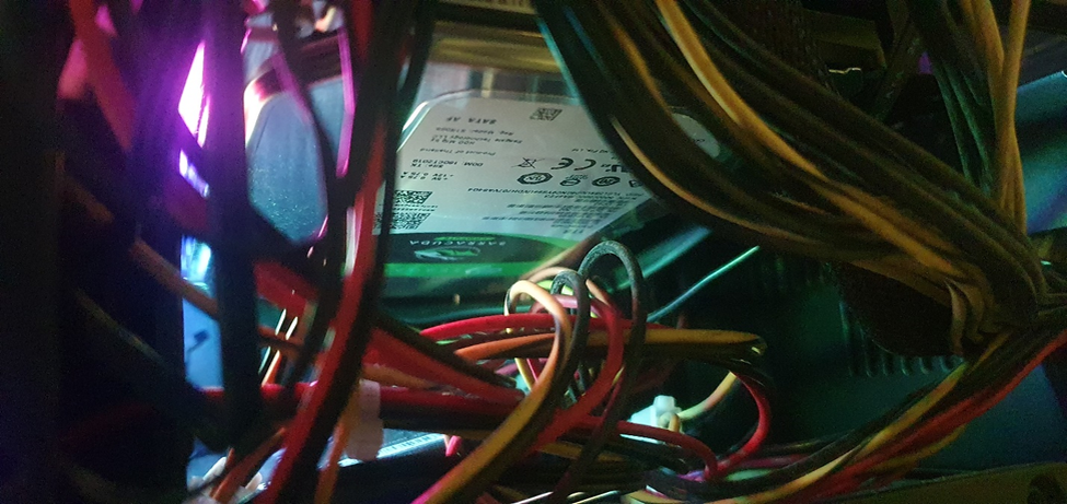 "Подопытным кроликом" выступит вот эта спрятавшаяся к верху ногами в проводах зелененькая SEAGATE BARRACUDA, моделька ST1000DM010-2EP102