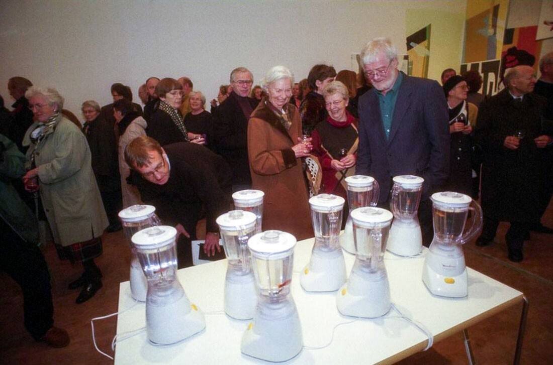 В 2000 году Марко Эваристти разместил в музее Трапхольт (Кольдинг, Дания) 10 блендеров с плавающими в них золотыми рыбками. Каждый прибор был подключен к сети, поэтому посетители могли нажать кнопку. Так «Helena» превратилась в социальный эксперимент. Один из гостей дважды запустил блендер. Реакция была разная — одни молча наблюдали, остальные требовали остановить «представление». Директору музея выписали штраф за жестокое обращение с животными, хотя до этого в галереях Бразилии, Чили и Аргентины инсталляция не вызвала никаких проблем. Проект исследует природу насилия: что происходит, когда человеку дают власть над чужой жизнью, а единственным барьером остается мораль? И конечно, приглашаем вас на курс «Почему это ART». Эксперты расскажут об актуальных произведениях искусства, их контексте и погрузят в свой диалог так, что вы сами не заметите, как станете участником разговора.