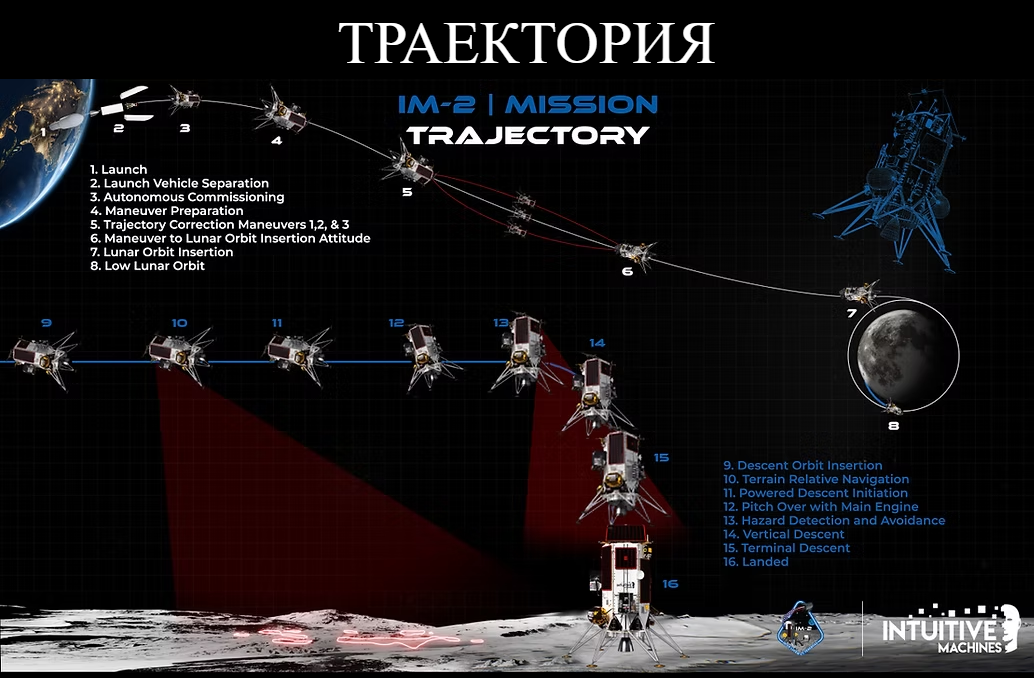 Ее кодовое название — IM-2 (Intuitive Machines). Это посадочный модуль "Афина" типа Nova-C от компании Intuitive Machines, который можно назвать "усовершенствованной версией Одиссея".