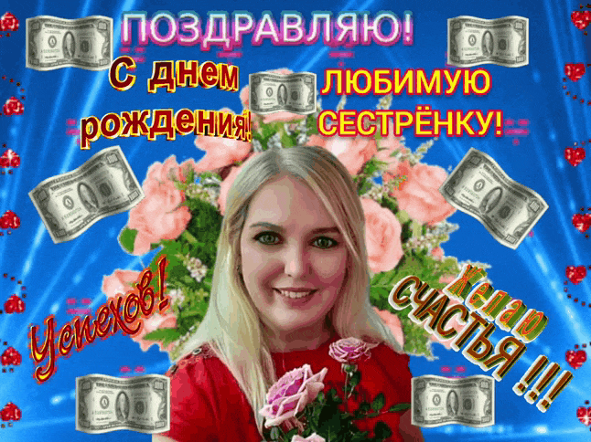 С ДНЁМ РОЖДЕНИЯ СЕСТРЁНКА!!! СЕСТРИЧКА МОЯ РОДНАЯ, ЛЮБИМАЯ И ОЧЕНЬ МИЛАЯ! ПОЗДРАВЛЯЕМ ТЕБЯ С ДНЁМ ТВОЕГО РОЖДЕНИЯ! Желаем оставаться много десятков лет такой же красивой, милой и очень доброй. Пусть для тебя всё в этом мире будет прекрасным. Пускай тебя радует домашний уют, Твои Дети и Твоя Семья! Здоровья тебе крепкого, бодрости и гармонии для тела и души! Пусть сама природа будет для тебя источником радости и вдохновения, а близкие люди — надёжной поддержкой и опорой! Ты моя лучшая подруга, лучшая собеседница, лучшая советчица, лучшая утешительница. Я так люблю тебя! Спасибо за твоё открытое сердце, за внимание и помощь. Я желаю тебе всех чудес мира, которых ты только пожелаешь! Пусть в твоей жизни всегда будут гармония и счастье, благополучие в семье и мирное небо над головой. Я желаю быть тебе счастливой, удачливой и успешной. Желаю чтоб на твоём пути распускались всегда ромашки добра и верности, розы любви и счастья, хризантемы здоровья и достатка. Спасибо, что ты у меня есть,