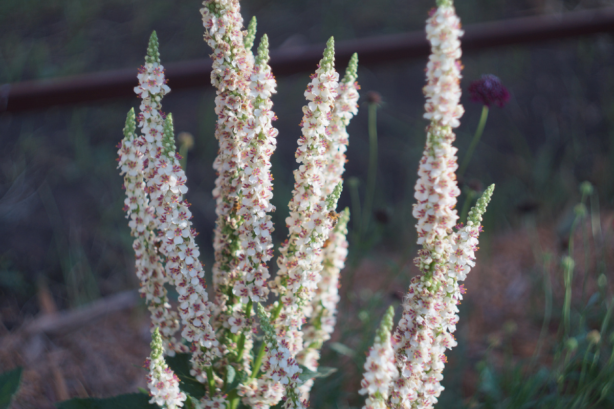 С вербаскумом у меня особые отношения. Это один из тех цветов, которые я люблю и коллекционирую доступные виды. В прошлом году сбылась моя давняя мечта приобрести вербаскум длиннолистный "Свадебные свечи" "Wedding Candles". (Verbascum chaixii f. album) Это белоцветковая форма вербаскума с темно-бордовыми глазками-тычинками. Благодаря такому сочетанию издали цветки выглядят так, словно они с кофейным оттенком. Одно из главных достоинств вербаскума в том, что зацветает он в первый год, при выращивании рассадой. И выглядит как полноценное растение, хотя это многолетник. Отличительная особенность этого вербаскума - соцветия канделябры. Вспомнился какой-то советский фильм "КАНДЕЛЯБРРРР". Не помню правда какой:) Хотя Яндекс подсказал, что фильм назывался "Дурная компания". Правда один КАНДЕЛЯБР получился кривоватый:) Самые большие любительницы канделябров в моем цветнике это пчелки. Когда утром встаю на работу, вижу как он буквально облеплен пчелами. Видимо очень вкусный канделябр! Свечки у