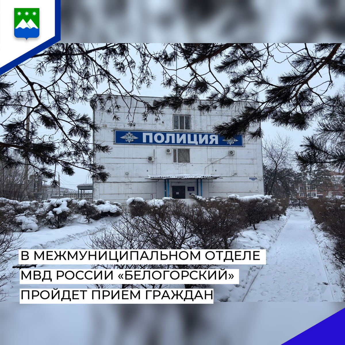 В межмуниципальном отделе МВД России «Белогорский» состоится прием граждан. В нем примет участие главный инспектор инспекции УВМД России по Амурской области, подполковник внутренней службы Иван Пушко. Прием жителей пройдет 8 февраля с 10:00 до 13:00. — Если у вас есть вопросы, нерешенные проблемы и предложения по усовершенствованию деятельности органов внутренних дел, приглашаем на встречу, — рассказывает инспектор группы анализа, планирования и контроля МО МВД России «Белогорский» Вероника Курган. — Для удобства и экономии времени рекомендуем заранее подготовить все необходимые документы и материалы для обсуждения вопросов. Прием граждан пройдет в здании полиции по адресу ул. Кирова, 174, каб. 109.