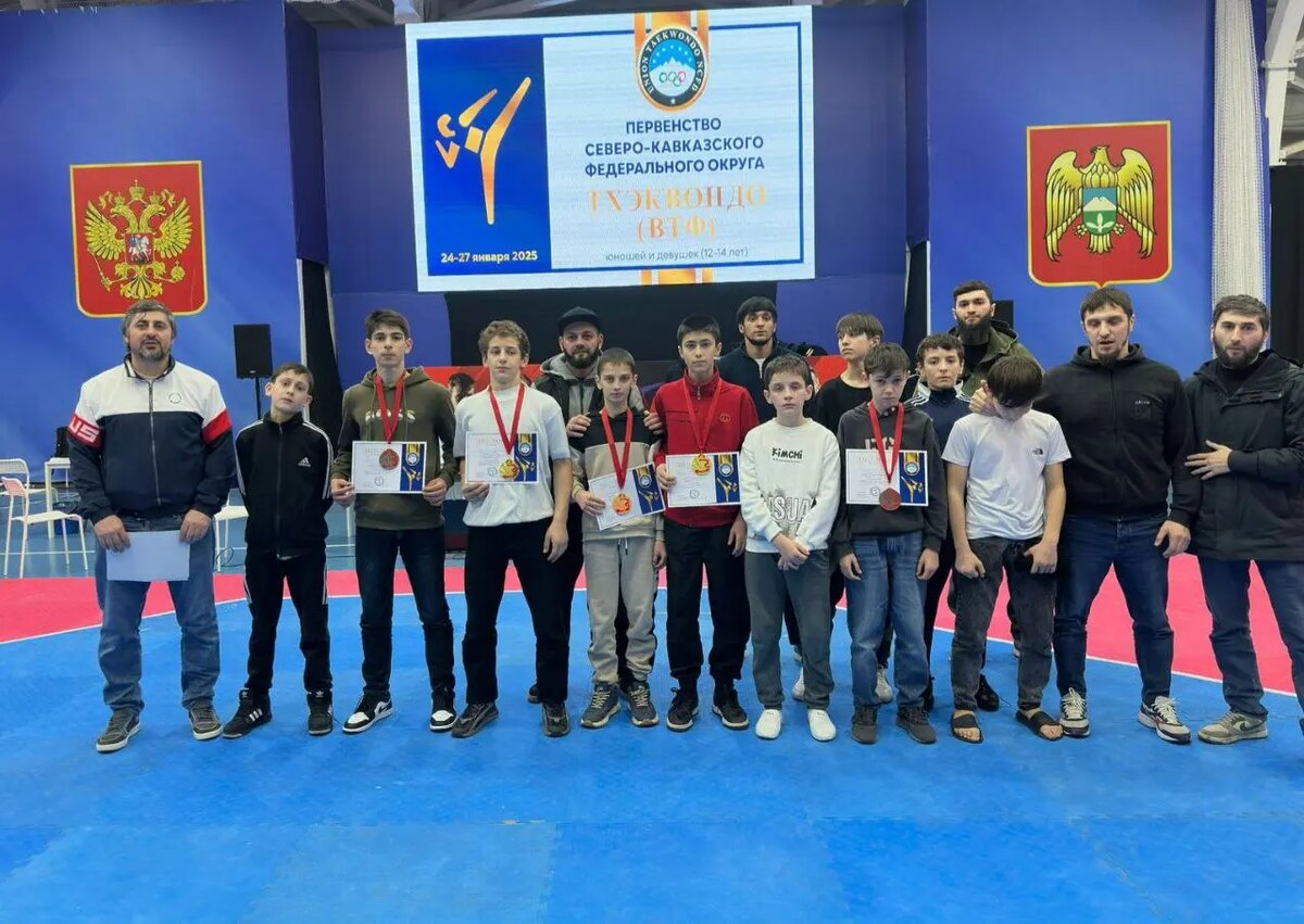 Ингушские спортсмены завоевали пять медалей на первенстве СКФО по тхэквондо для юношей в возрасте от 12 до 14 лет в Нальчике. Как информировало газету «Ингушетия» спортивное ведомство республики, в этих состязаниях выступило более 180 спортсменов из семи регионов округа. Участники демонстрировали свои навыки согласно олимпийской системе, участвуя в поединках, состоящих из трех раундов по 1,5 минуты каждый. Команда Ингушетии показала хороший результат: три золотые, одна серебряная и одна бронзовая медали. Золотые награды достались Хидирову Абу-Бакру (57 кг), Цурову Микаилу (41 кг) и Муталиеву Абдул-Малик (33 кг). Серебряную медаль в весе до 57 кг выиграл Аушев Мухаммад-Амин. Бронзовым призером в категории до 33 кг стал Тимурзиев Дамир. В командном зачете тхэквондисты Ингушетии заняли второе место, что свидетельствует о высоком уровне подготовки и профессионализме тренеров. Спортсмены, завоевавшие медали, получили возможность участвовать в первенстве России, которое состоится в феврале в