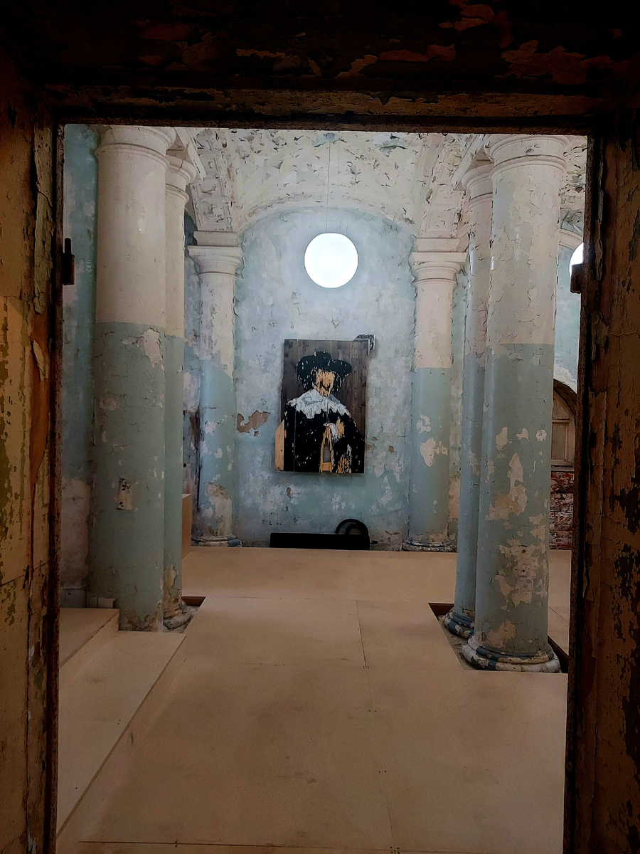 Сама выставка впечатляет и завораживает. Кажется, будто в этом доме разные эпохи переплелись друг с другом. Сводчатые потолки, вестибюль с обшарпанными колоннами и окошком регистратуры советского периода, сохранившиеся дореволюционные перила, инсталляции на выставке – всё очень удачно и органично сочетается друг с другом.