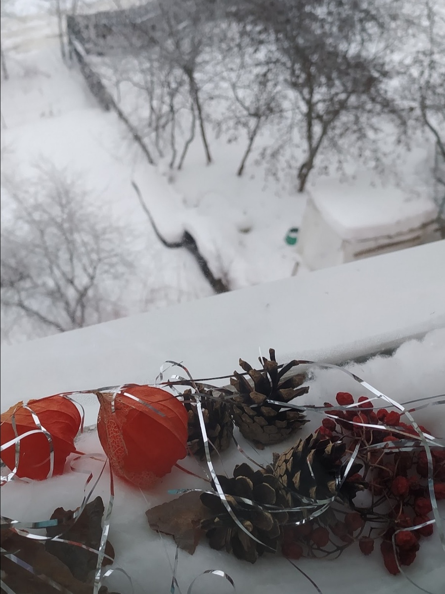 Самые высокие сугробы той зимы на подоконнике я успела запечатлеть.