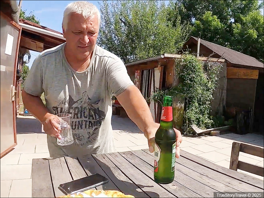 "Наша еда хорошо идет с пивом", - сказал Винс и принес бутылочку местного пенного напитка. - "Тогда получается не так жирно. Вот тебе бутылочка холодненького "Сопрони" - лучшее венгерское пиво".