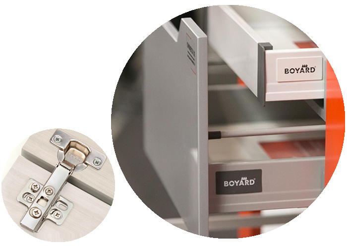 Выбор фурнитуры для кухни на заказ – важный этап, который влияет не только на функциональность и удобство использования, но и на долговечность и общий стиль вашей кухни. Различия между категориями “Стандарт”, “Комфорт” и “Премиум” обычно заключаются в качестве материалов, механизмах, функциональности и, конечно же, цене. Какую фурнитуру выбрать? Предлагаем три уровня фурнитуры: 🔸Стандарт — надежность по доступной цене. Плюсы: Минусы: Производители данного сегмента: BOYARD – российский производитель мебельной фурнитуры. 🔸Комфорт — плавное закрывание и оптимальный функционал. Плюсы: Минусы: Производители данного сегмента: GTV – крупнейший польский производитель мебельной фурнитуры и светодиодного освещения. 🔸Премиум — высший уровень удобства и долговечности. Плюсы: Минусы: Производители данного сегмента: Blum – австрийский производитель инновационной фурнитуры для мебели. Hettich – одним из ведущих мировых производителей мебельной фурнитуры. Как сделать выбор: В заключение: Выбо