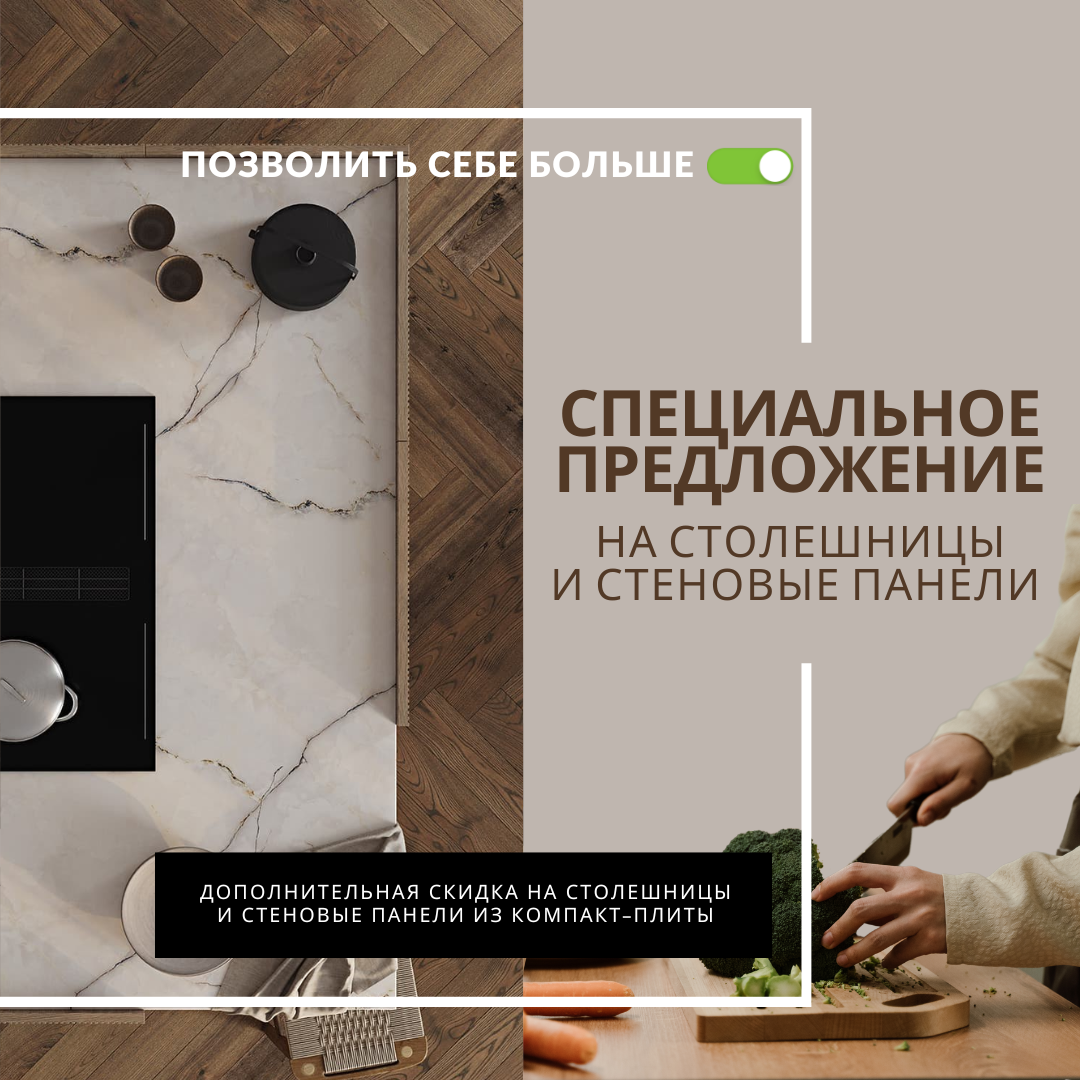 Дополнительная скидка на столешницу и стеновую панель из компакт-плиты от "ЗОВ"