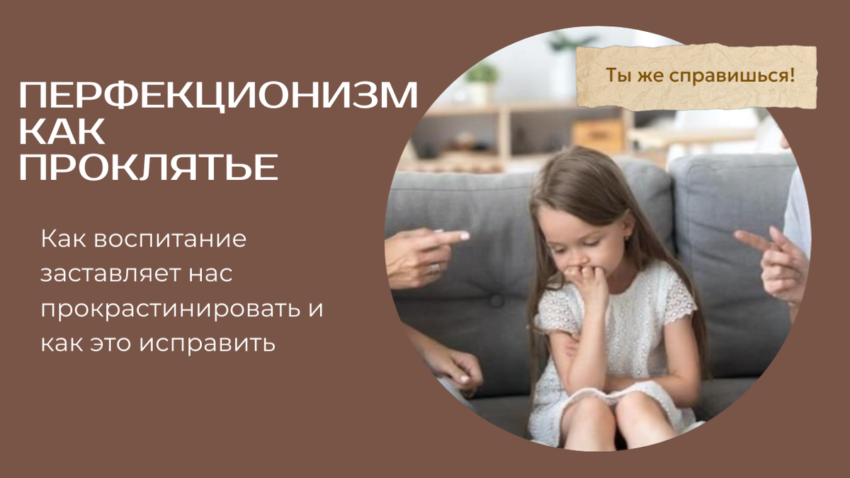 «Сядь и сделай!», «Не позорь нас!», «Ты можешь лучше!» — эти фразы из детства, как вирус, живут в голове. И именно они часто заставляют нас годами откладывать важные дела. Разбираемся, как родительские установки превращают нас в прокрастинаторов, и как вырваться из этого круга. „Ты же справишься!“: Перфекционизм как проклятие Представьте: ребенок получает «четверку» и слышит: «Почему не пятерку?». Во взрослой жизни такой человек будет бесконечно редактировать отчет, боясь «неидеальности», а потом… просто не отправит его. Брене Браун, исследовательница уязвимости, пишет: «Перфекционизм — это не про рост. Это про страх, что нас не примут такими, какие мы есть». Статистика жестока: 68% прокрастинаторов связывают свое поведение со страхом сделать что-то «недостаточно хорошо» (исследование Университета Карлтона). А корни этого страха — в установках «ты должен быть лучшим», заложенных в детстве. Что делать?