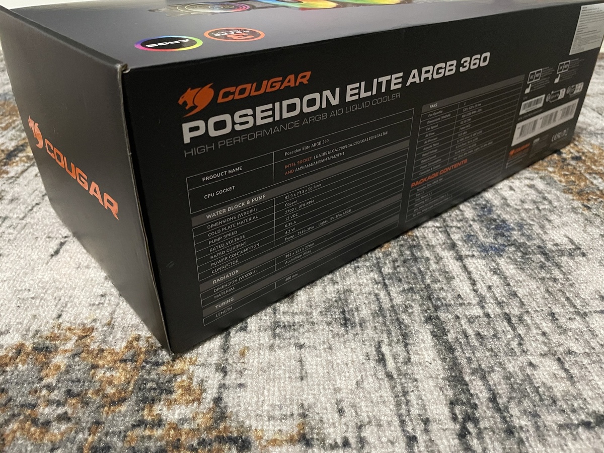 Содержание: Упаковка Система охлаждения Cougar Poseidon Elite 360 ARGB поставляется в прочной картонной упаковке, украшенной яркой графикой и логотипами с информацией. Упаковка хорошо защищает содержимое от повреждений во время транспортировки. Внутри все компоненты упакованы в специальные пенопластовые вставки, что минимизирует риск повреждения радиаторов и вентиляторов, что создает положительное первое впечатление. Внешний вид и качество сборки Визуально Poseidon Elite 360 выглядит стильно и очень привлекательно с черным алюминиевым радиатором и матированными вентиляторами с ARGB-подсветкой. Качество сборки на высоком уровне: все элементы выглядят надежно и качественно, нет никаких заметных зазоров или неровностей. Комплектация В комплект входят: Комплектация достаточно полная, что позволяет без проблем установить систему охлаждения на большинстве современных ПК. Дизайн и удобство использования Дизайн системы охлаждения выглядит современно и стильно, благодаря RGB-подсветке, которая