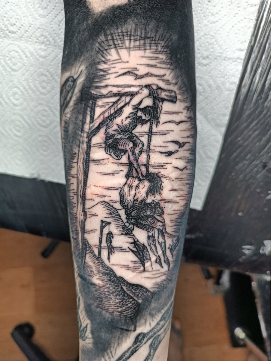 Представьте себе: на вашей коже, словно оживший фрагмент старинной книги, разворачивается сцена, полная гротеска и фантазии. Это не просто татуировка, это манифест, заявление о вашей связи с искусством и литературой, о вашем взгляде на мир, где ирония и гротеск переплетаются с глубоким смыслом. Речь идёт о репродукции иллюстрации Гюстава Доре к произведениям Рабле, выгравированной не на бумаге, а на вашем собственном теле. Гюстав Доре, великий французский иллюстратор XIX века, был мастером оживлять литературные миры. Его гравюры к произведениям Франсуа Рабле, с их карикатурными образами, динамичными сценами и богатой детализацией, стали неотъемлемой частью восприятия этого великого французского писателя. Рабле и Доре — это союз грубоватого юмора, иронии и философского размышления о человеческой природе, и теперь этот союз воплотился в моей работе. Выбор иллюстрации Доре для татуировки – это не случайность. За этим стоит глубокий интерес к гротеску, к миру, где смех и страх переплетаютс