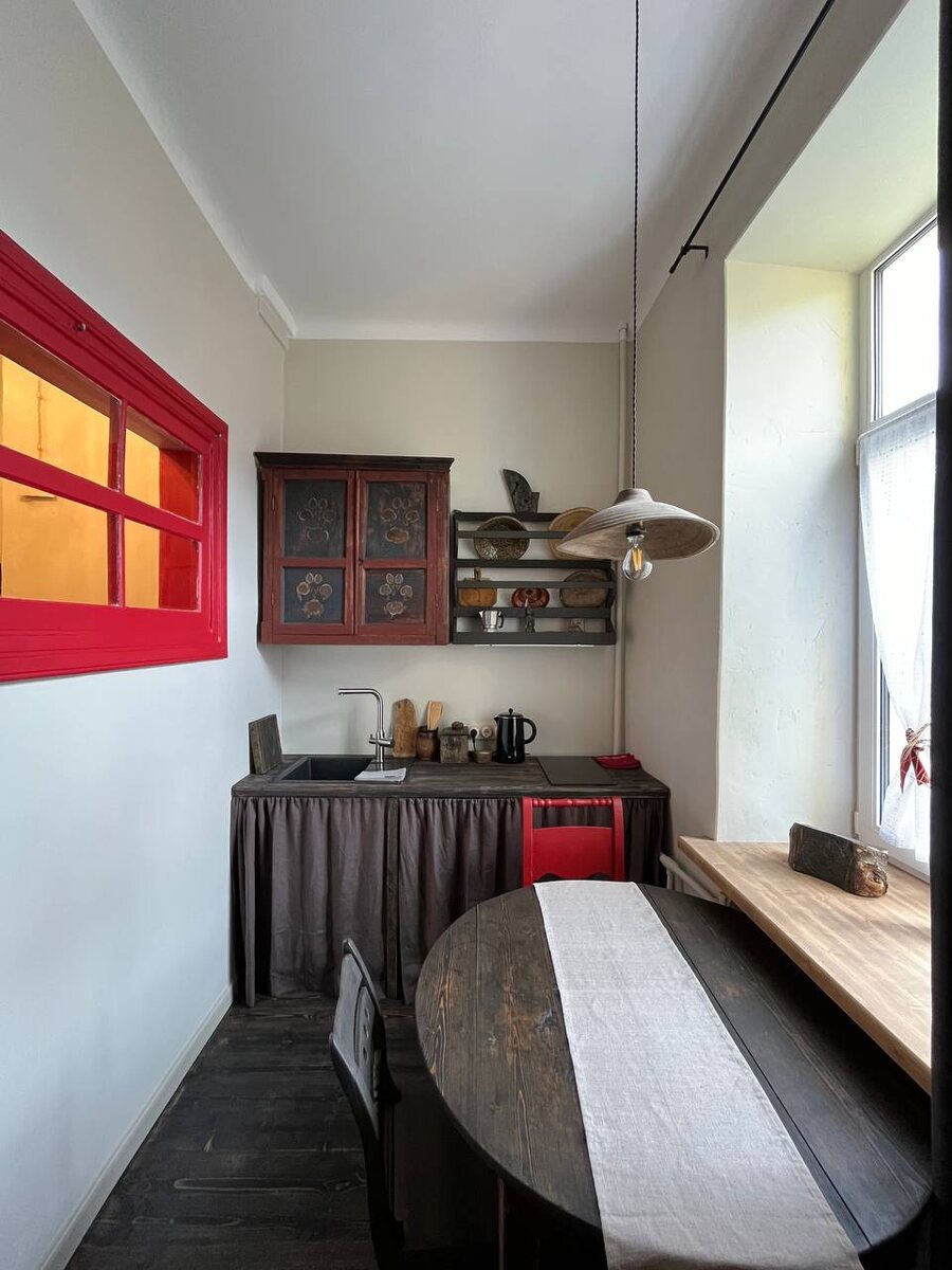 Всем привет! И сегодня у нас снова полезная статья про кухни, это одна из самых сложных, на мой взгляд, комнат для проектирования. Часто мы имеем ограниченный бюджет и небольшую площадь помещения, как на фото ниже. Совет 1: Используйте текстиль вместо фасадов. Этот прием отлично работаети в загородных домах, можно совмещать кухню выполненную из бетона, также подходит для минималистичного интерьера Для многих семей кухня выполняет сразу несколько функций. Это приготовление пищи, столовая зона и иногда рабочий кабинет. Совет 2: организуйте рабочую зону около окна Обратите внимание на фото выше, здесь в небольшой по площади кухне организовали удобную зону около окна. Можно принимать здесь пищу, удобно работать за высокой столешнице и рядом с окном. Совет 3: используйте винтажные детали Винтажные детали добавляют уюта помещению. На кухне это могут быть: освещение (люстра на фото выше), винтажная витрина в зоне фартука или посуда, небольшие детали декора. Совет 4: Поселить кухню в