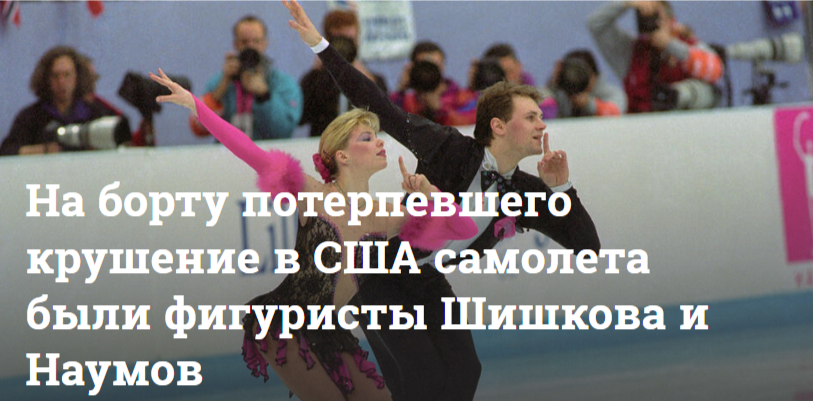 Песков подтвердил гибель россиян в авиакатастрофе в США: среди погибших фигуристы Шишкова и Наумов