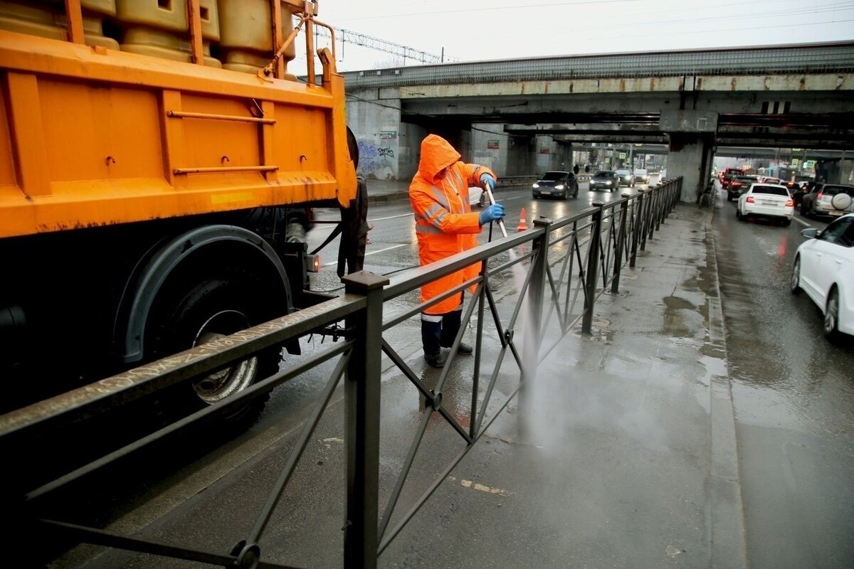 Дорожники продолжают весеннюю уборку улиц Петербурга в разгар зимы