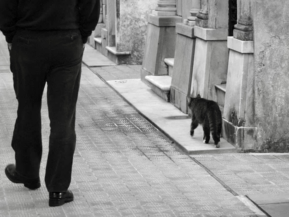 При виде человека кошка понимает, что это ее шанс получить еду, поэтому она его преследует и ждёт, что ее покормят.