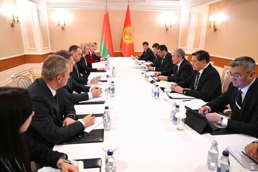 Алматыда Адылбек Касымалиев менен Роман Головченконун жолугушуусу өтүп, анда кыргыз-беларусь кызматташтыгынын келечеги талкууланды. Эки премьер-министр жакынкы 5 жылда соода жүгүртүүнү 500 миллион долларга жеткирүү максатын көздөп, соода, айыл чарба жана өнөр жай кооперациясын өнүктүрүүнүн маанилүүлүгүн баса белгилешти. 🇰🇬 Кыргызстан менен Беларусь кызматташтыкты чыңдоодо. 🤝 Алматыда Евразия өкмөттөр аралык кеңешинин жыйынынын алкагында Кыргызстандын Министрлер Кабинетинин Төрагасы Адылбек Касымалиев менен Беларустун Премьер-министри Роман Головченконун жолугушуусу болду. 🎉 Касымалиев Кыргызстандын президенти Садыр Жапаровдун Александр Лукашенкого Беларустагы шайлоонун ийгиликтүү өтүшү менен куттуктоосун жеткирип, эки өлкөнүн ортосундагы жалпы тарыхка жана бири-бирин колдоого негизделген достук мамилелерди белгиледи. 📈 Кыргызстан менен Беларустун ортосундагы соода жүгүртүүнүн көлөмү өткөн жылдын 11 айында 84,1 миллион долларга жакынды түздү. Бирок эки тарап тең соода, өнөр жай коо