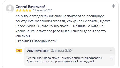 Как же приятно, когда наши посетители оставляют отзывы о нашей работе! В двойне приятно, когда прикладывают фотографии наших работ. Было мятое крыло. Мы сделали его ровным, как было и сохранили при этом краску. На все вопросы по ремонту с удовольствием ответим по телефону или WhatsApp: