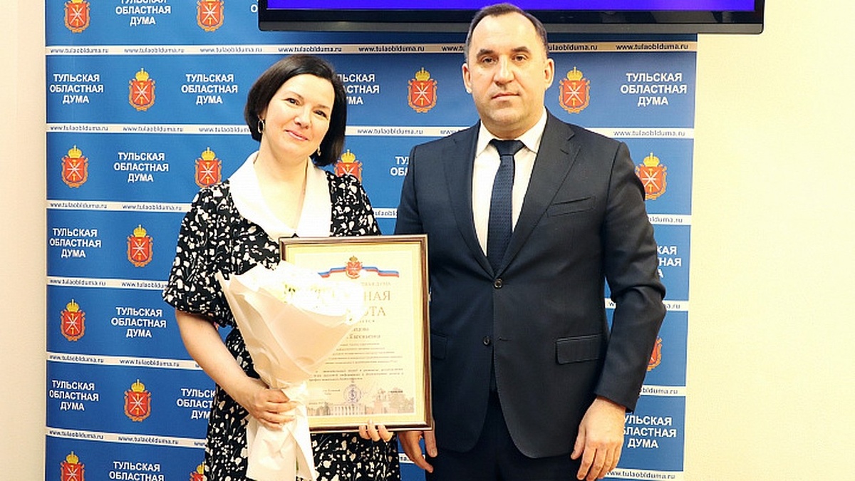 На заседании регионального парламента в четверг, 30 января, почетной грамотой Тульской областной Думы награждена корреспондент Службы информационных программ телевидения ГТРК «Тула» Мария Кузнецова. Мария отмечена за значительный вклад в развитие региональных средств массовой информации и успехи в профессиональной деятельности. Также председатель Тульской областной Думы Андрей Дубровский наградил члена областного отделения Всероссийской общественной организации ветеранов «Боевое братство» Владислава Гайнулина за значительный вклад в развитие ветеранского движения, патриотическое воспитание молодежи и активную общественную работу по поддержке ветеранов. По информации Тульской областной Думы
