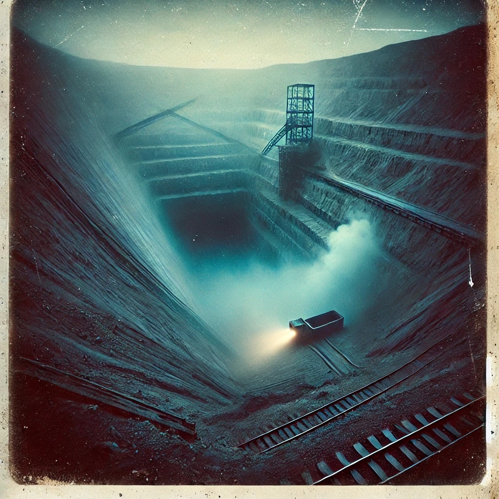 В самой глубине карьера, прямо внизу, где когда-то копали уголь, работал какой-то механизм. То ли экскаватор старый, то ли что-то вообще непонятное. Оно гудело, светилось тусклым синим и время от времени издавало такие звуки, будто внутри что-то прокручивалось с немыслимой скоростью.