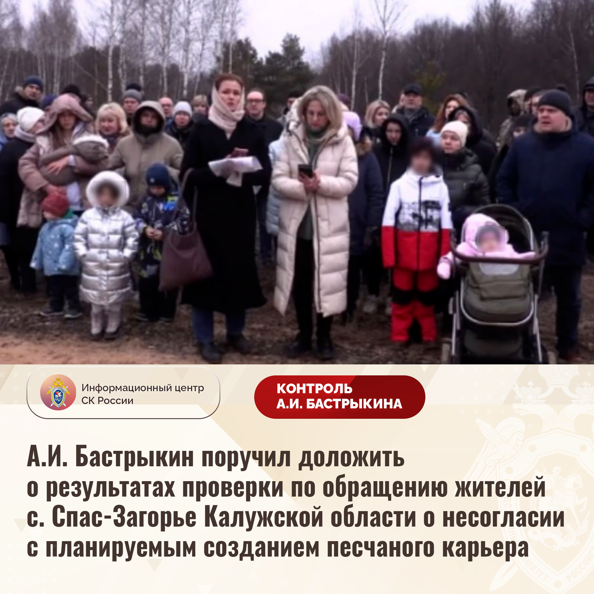 А.И. Бастрыкин поручил доложить о результатах проверки по обращению жителей с. Спас-Загорье Калужской области о несогласии с планируемым созданием песчаного карьера
