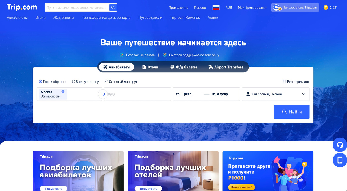 - Price Match Guarantee: если найдёте тот же билет или отель дешевле, Trip.com компенсирует разницу.