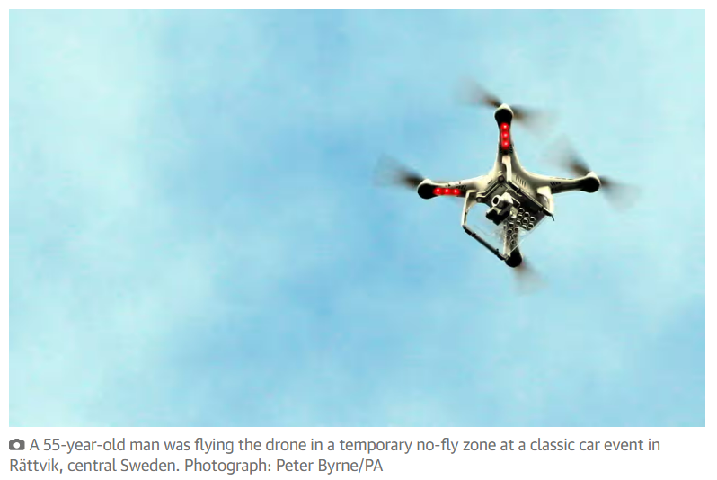 В шведском городе Реттвике задержали пьяного мужчину, поднявшего в воздух дрон для наблюдения за встречей любителей ретроавтомобилей. Местный суд присудил задержанному штраф как за вождение автомобилем в нетрезвом виде, сообщила The Guardian. Это первый подобный случай в Швеции, уточнила газета. 55-летний мужчина был официально признан виновным в том, что управлял дроном в нетрезвом виде. Суд оштрафовал задержанного на 32 000 шведских крон (285 тысяч рублей), которые должны быть выплачены в течение 80 дней платежами по 400 шведских крон (почти четыре тысячи рублей). Полицейские обратили внимание на мужчину, потому что в зоне проведения мероприятия было временно запрещено запускать любые беспилотные аппараты, сообщила The Guardian. Взлетевший дрон оказался замечен полицейским дроном, а затем сотрудники правоохранительных органов обнаружили место, откуда управляли аппаратом-нарушителем. У мужчины, который признался полицейским, что управлял дроном, в крови оказалось 0,69 промилле алкогол