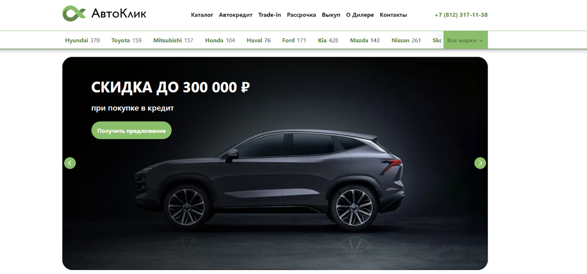 В автосалоне АвтоКлик, который находится в СПБ, якобы можно купить БУ-автомобиль по сниженной стоимости. Главный баннер на сайте обещает скидку до 300 000 рублей. В каталоге действительно указаны цены ниже рынка. Однако возникает вопрос: с чего вдруг такая щедрость? Особенно это настораживает при учете того факта, что на сайте нет верифицированных отчетов о состоянии авто.