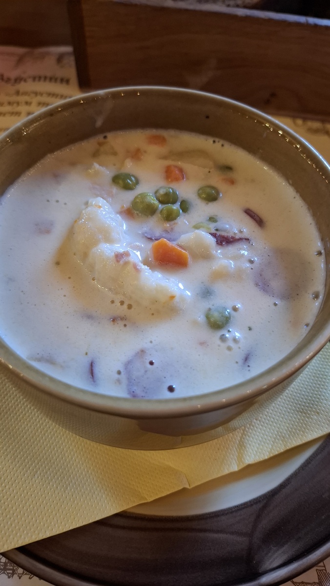 Очень люблю сырные супы. Попробовали очередную интерпретацию. Очень понравилось. Ингредиенты Плавленый сыр Картофель сухой Цветная капуста Баварские колбаски Замороженный горошек Лук Морковь Варим цветную капусту, добавляем морковь, лук пассированный, картофель сухой, соль, сыр плавленный, горошек замороженный. В самом конце добавляем баварские колбаски. Все. Очень быстро и невероятно вкусно.