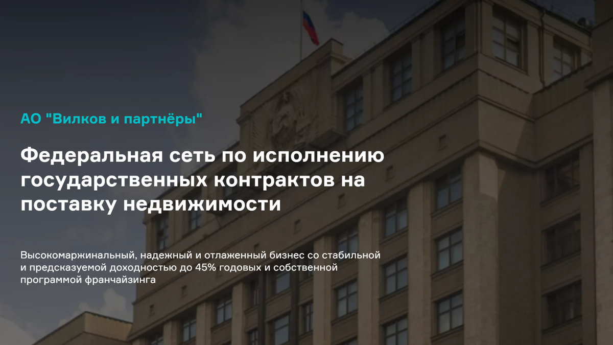 - АО "Вилков и Партнеры" - 45% годовых. Подробную информацию можно увидеть в финансовой модели.