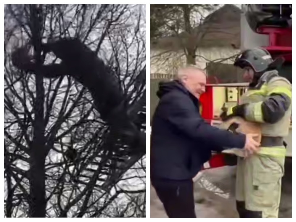 Тот забрался на высокое дерево и самостоятельно спуститься не мог. Видео спецоперации по спасению «усатого-полосатого» публикует МЧС России. Известно, что дело было в деревне под Ярославлем. Оказавшийся на верхушке высокого дерева кот по кличке Персик не мог слезть самостоятельно, замерзал и жалобно мяукал. На место выехала пожарная машина с автолестницей. «Водитель мастерски разместил технику и, пользуясь боевым снаряжением, поднялся по автолестнице», — сообщили в МЧС России. После спуска, спасатели передали Персика владельцу, который поблагодарил сотрудников МЧС за помощь. «Нам важна каждая жизнь!» — подчеркнули в МЧС.