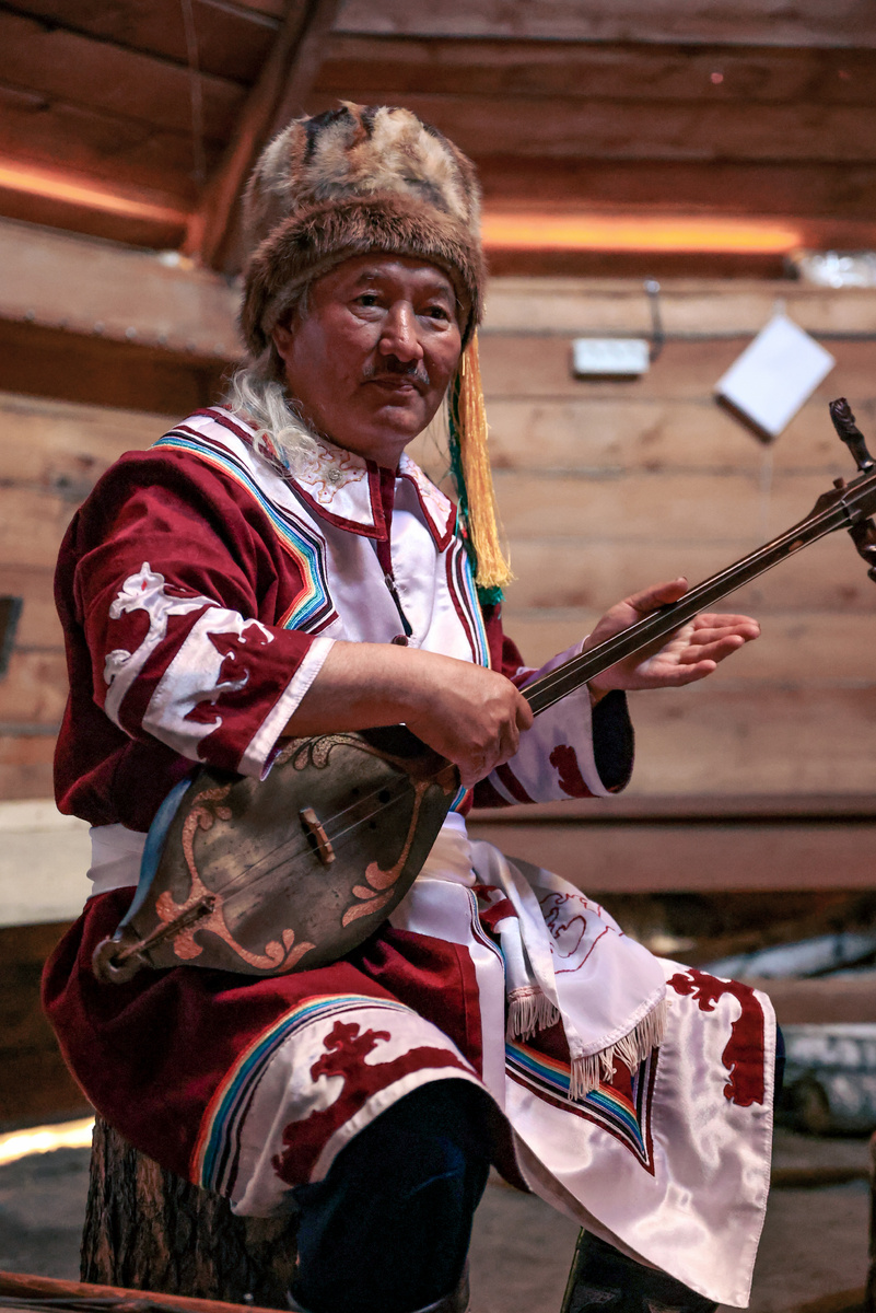 О чем это я? Это я об увиденном и услышанном мной, горловом пении сказителя - Алексея Кимовича Асканова. Мы со своей группой, услышав о кайчи, решили тоже, скажем так приобщиться к культурному наследию. В назначенный час мы вошли в юрту-аила сказителя, уселись поудобнее вокруг мерно пылающего огня и стали смотреть и слушать.