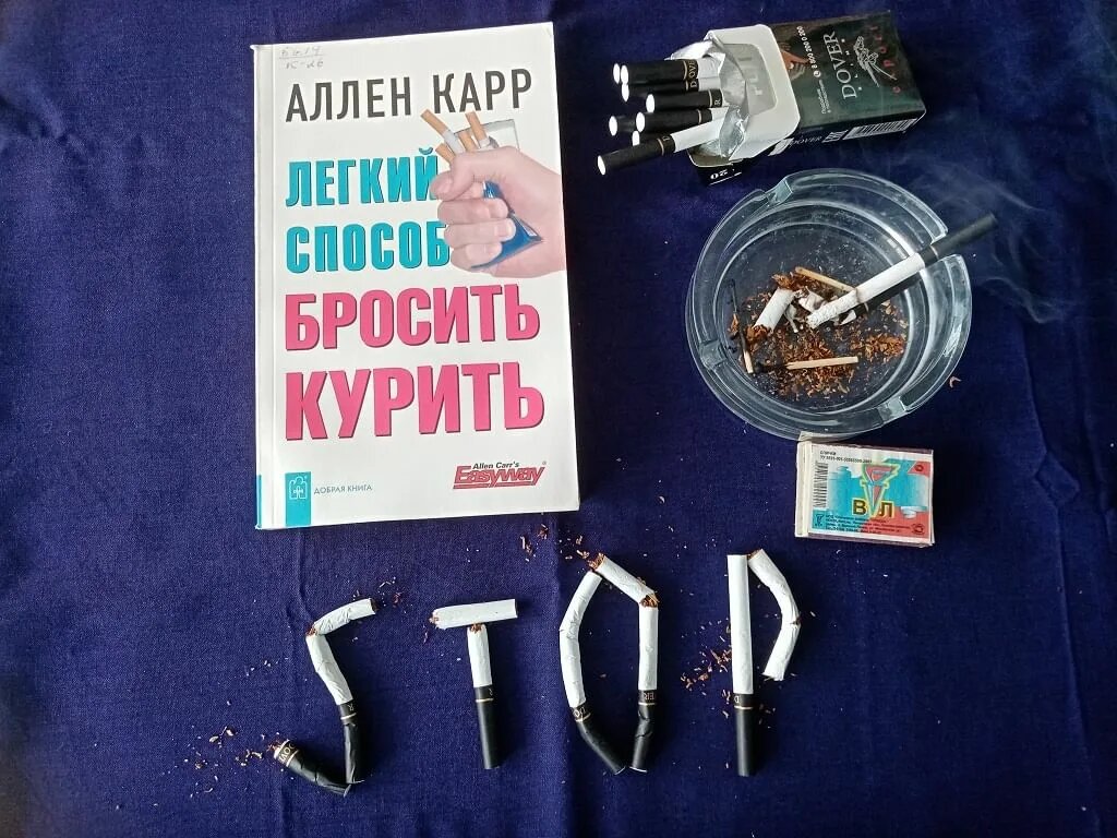 Хочу сразу отметить , что курил я около 15 лет и последние 4 года я БОРОЛСЯ с этой привычкой , хотя как оказалось бороться было не с чем , это лишь очередная уловка маркетинговых компаний. Когда я решил бросить курить, я думал, что это будет сложно. Я перепробовал множество методов,включая пластыри и жвачки (ну это бред - отказываться от одного вида никотина , чтобы пересесть на другой!), все они либо не приносили результатов, либо требовали слишком много усилий и жертв. Но одна книга изменила всё. Это - "Легкий способ бросить курить" Аллена Карра. Я не рекламирую эту книгу , я лишь хочу помочь Вам , прочтите её на