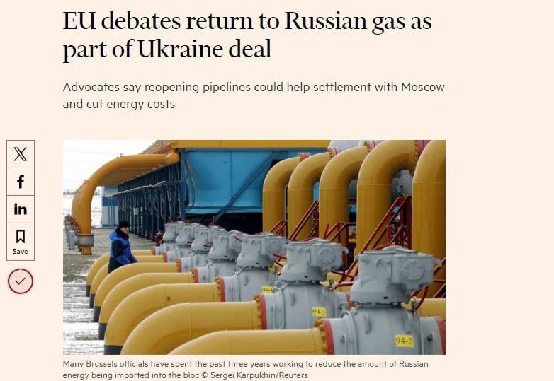 Евросоюз может вернуться к российскому газу в ходе торга и сделки по Украине — Financial Times