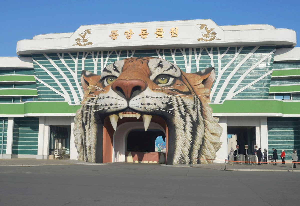 Гиды, правда, поначалу недоумевали. Было видно, что нечто подобное туристы предлагают им впервые. Но, поняв всю серьезность нашего предложения, они принялись куда-то звонить и согласовывать изменения в программе. И лишь под вечер следующего дня нам был дан ответ: посещению зоопарка быть! Ради него пришлось даже немного перетасовать другие пункты программы, но в итоге мы все успели и, кажется, стали едва ли не первыми туристами (по крайней мере за очень долгое время), посетившими Центральный зоопарк Пхеньяна. Приехали к главному входу, выполненному виде головы тигра с раскрытой пастью, мы еще до открытия, так что пришлось немного подождать начала работы касс, но уже вскоре заветные билеты были куплены, и мы проследовали на территорию зоопарка.