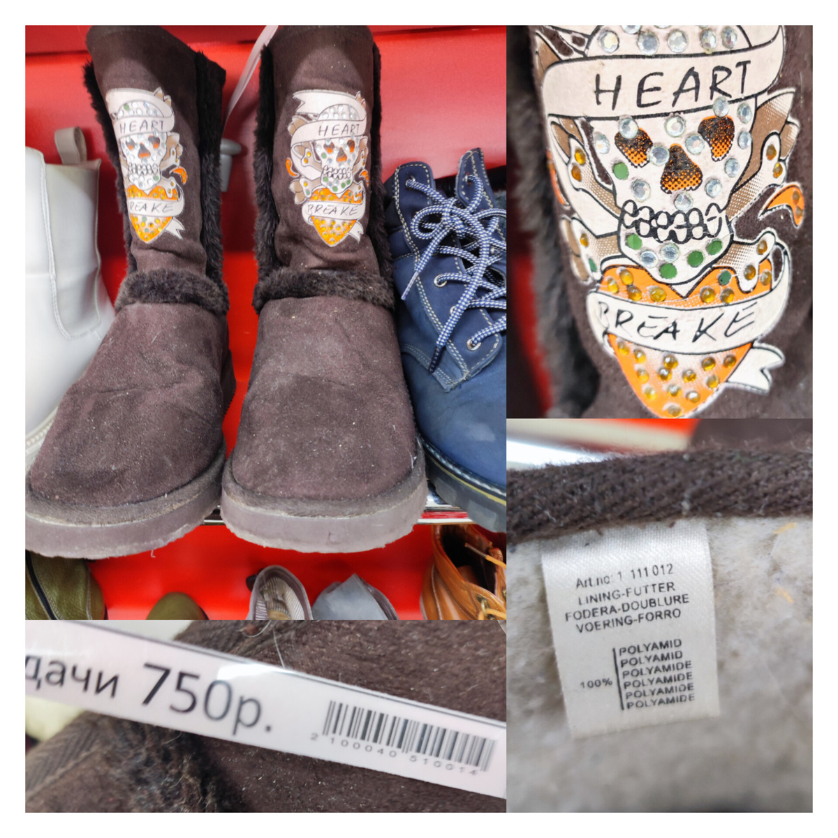 Всем привет! Меня зовут Настя, здесь на канале я рассказываю о своих находках из магазинов Секонд Хенд. Ещё я показываю свои покупки и делюсь результатами своих продаж. Также я очень люблю делать обзоры из магазинов Секонд Хенд тех вещей, которые меня заинтересовали, но которые я не купила. Ну что, пробежимся по Секондам вместе и посмотрим, чем же на этой неделе нас удивят и порадуют новинки и обновления в магазине: 1. Сапоги/Уги. Они не замшевые, без бренда , и особо в них нет ничего примечательного, если бы так не цепляло оформление. В пятницу, в последний день распродажи они по прежнему стояли на полке. Полагаю, что их никто так и не купил. На Ебей почти с таким же рисунком нашла сапоги, но у этих есть имя- Ed Hardy. Цена 99 долларов. 2. Рубашка Harmont & Blaine. Интересный логотип - такса, привлек меня среди гор детской одежды. Цена 175 рублей. Оказалось это люксовый итальянский бренд одежды. Один из самых узнаваемых элементов дизайна бренда - это собачий логотип. Собака породы