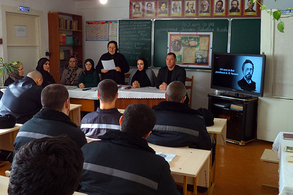 Заместитель директора школы по учебно-воспитательной работе Хадижат Гасанова открывая мероприятие, рассказала осужденным о вкладе творчества великого русского писателя Антона Павловича Чехова в культурное наследие России.
