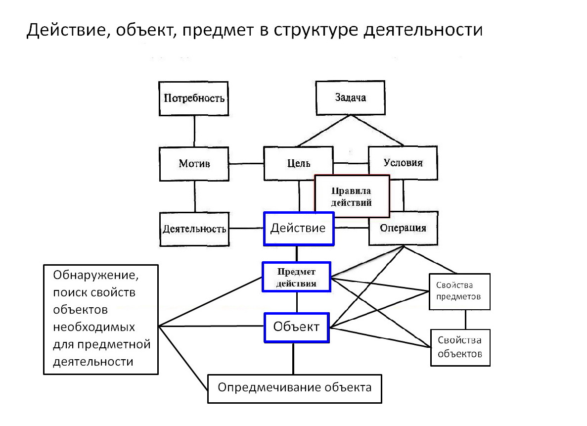 Встреча действия с объектом актуализирует, обнаруживает новые свойства объектов.
