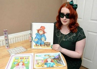 Кимберли Берроуз из британского города Солфорд полностью слепа на один глаз, а вторым может сфокусироваться на выбранном объекте лишь в течение 20 минут. Однако девушка, посвящающая все свободное время рисованию, отказывается считать себя инвалидом. «Люблю искусство с тех пор, как помню себя, – говорит она. – Постепенно мое увлечение переросло в страсть к рисованию, и, хотя отсутствие зрения создает трудности в моей работе, требующей внимания к деталям, я решительно намерена добиться успеха. Конечно, я могла бы постараться и создавать натюрморты, но я предпочитаю рисовать то, что происходит в моем воображении».