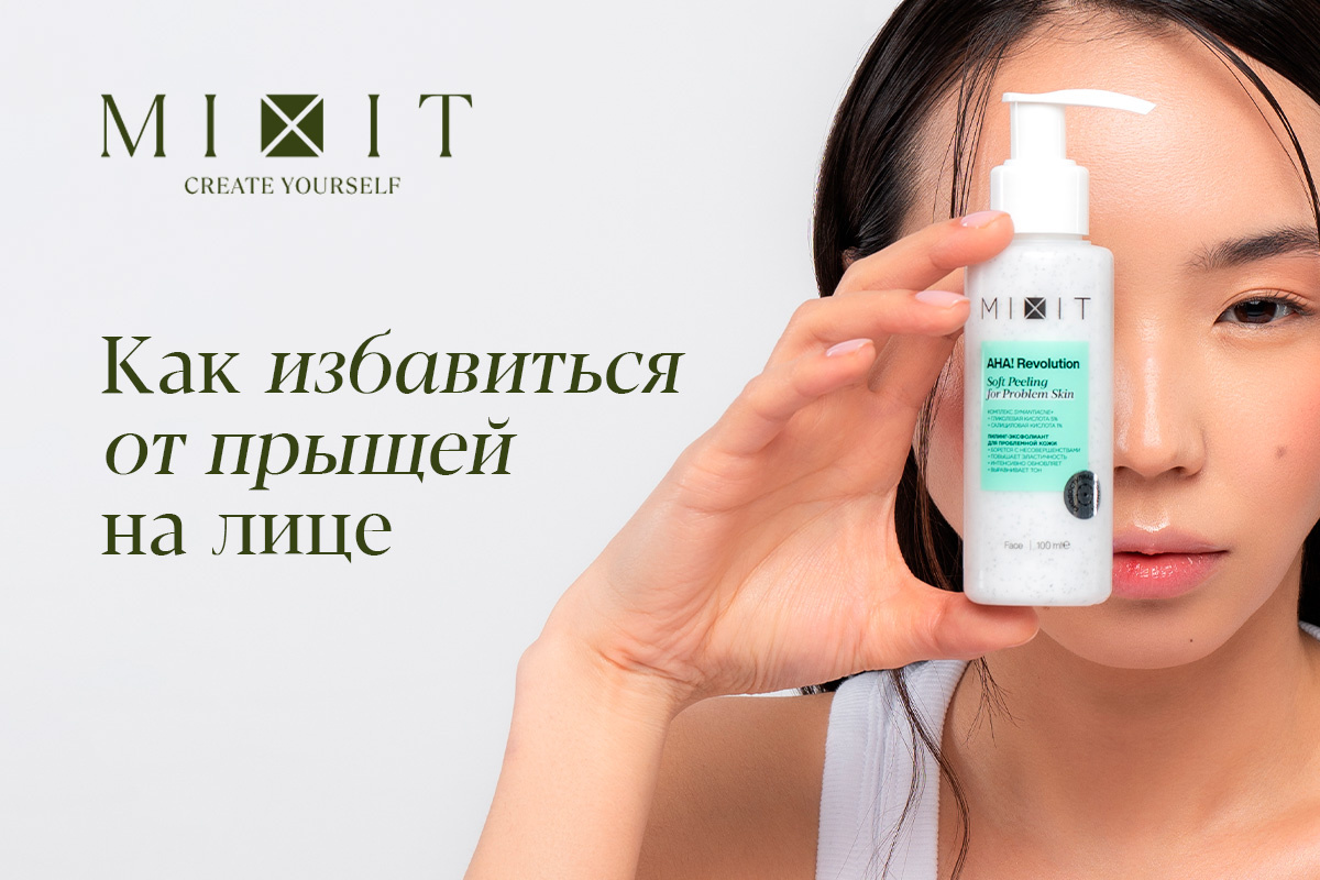 У MIXIT есть две линейки средств, которые справляются с этими задачами – это AHA! Revolution с гликолевой и салициловой кислотами и Your Skin Oily с ниацинамидом и экстрактом гриба агарик.