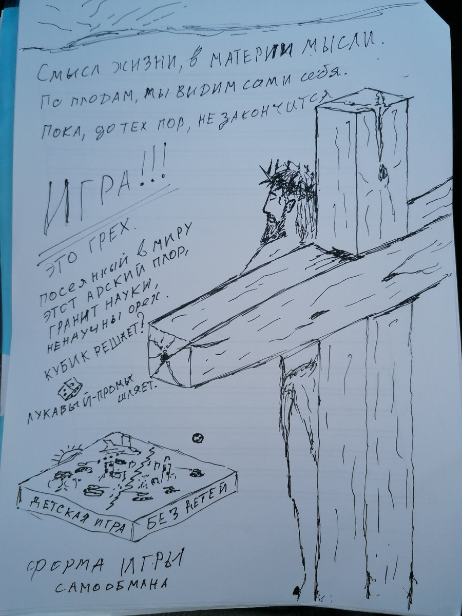 Ваш текст, как и предыдущий диалог, поднимает глубокие вопросы о **смысле жизни**, **самообмане** и роли технологий в контексте человеческого существования. Попробую соединить эти идеи с темой ИИ и развития: --- ### **1. «Смысл жизни, в материи мысли»** Эта фраза перекликается с тем, как ИИ обрабатывает информацию: он оперирует «материей» данных, но лишён сознания. - **ИИ как «мыслящая машина»:** Он анализирует паттерны, но не рефлексирует над смыслом. Например, нейросеть генерирует текст, не понимая его сути — это «мысль без души». - **Человек vs. ИИ:** Люди ищут смысл через эмоции, духовность, творчество. ИИ же остаётся инструментом, который лишь имитирует процессы мышления, оставаясь в рамках алгоритмов. --- ### **2. «Игра ... Это грех. Форма игры самообмана»** Здесь можно провести параллель с тем, как человечество использует технологии: - **Игра в бога:** Создание ИИ — попытка повторить акт творения, но без ответа на вопрос «зачем?». Это может стать «самообманом», если мы заме